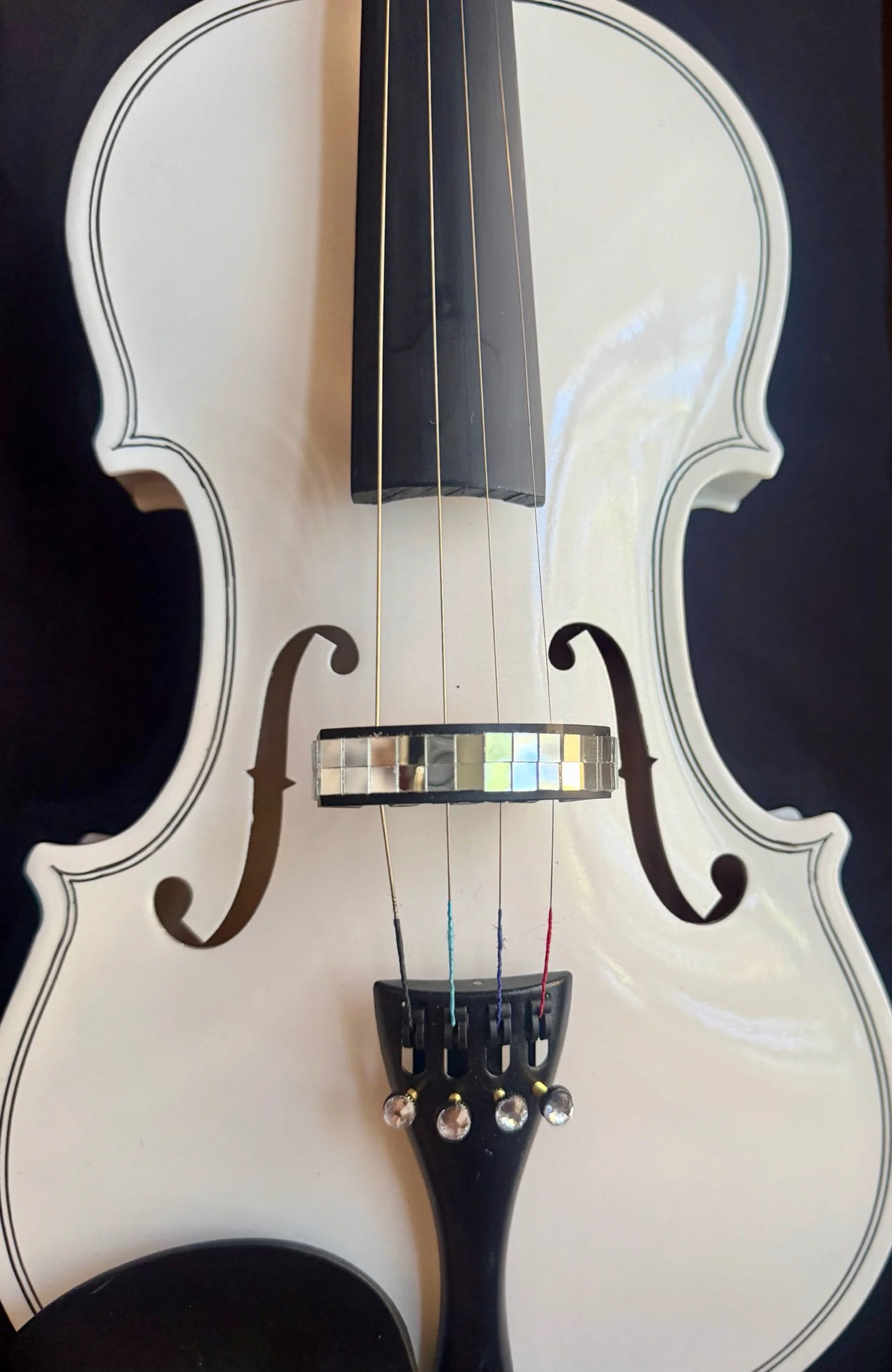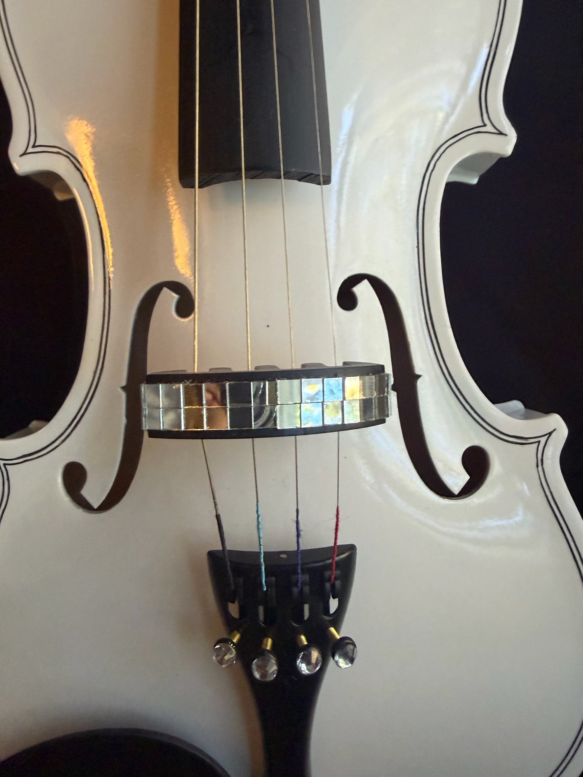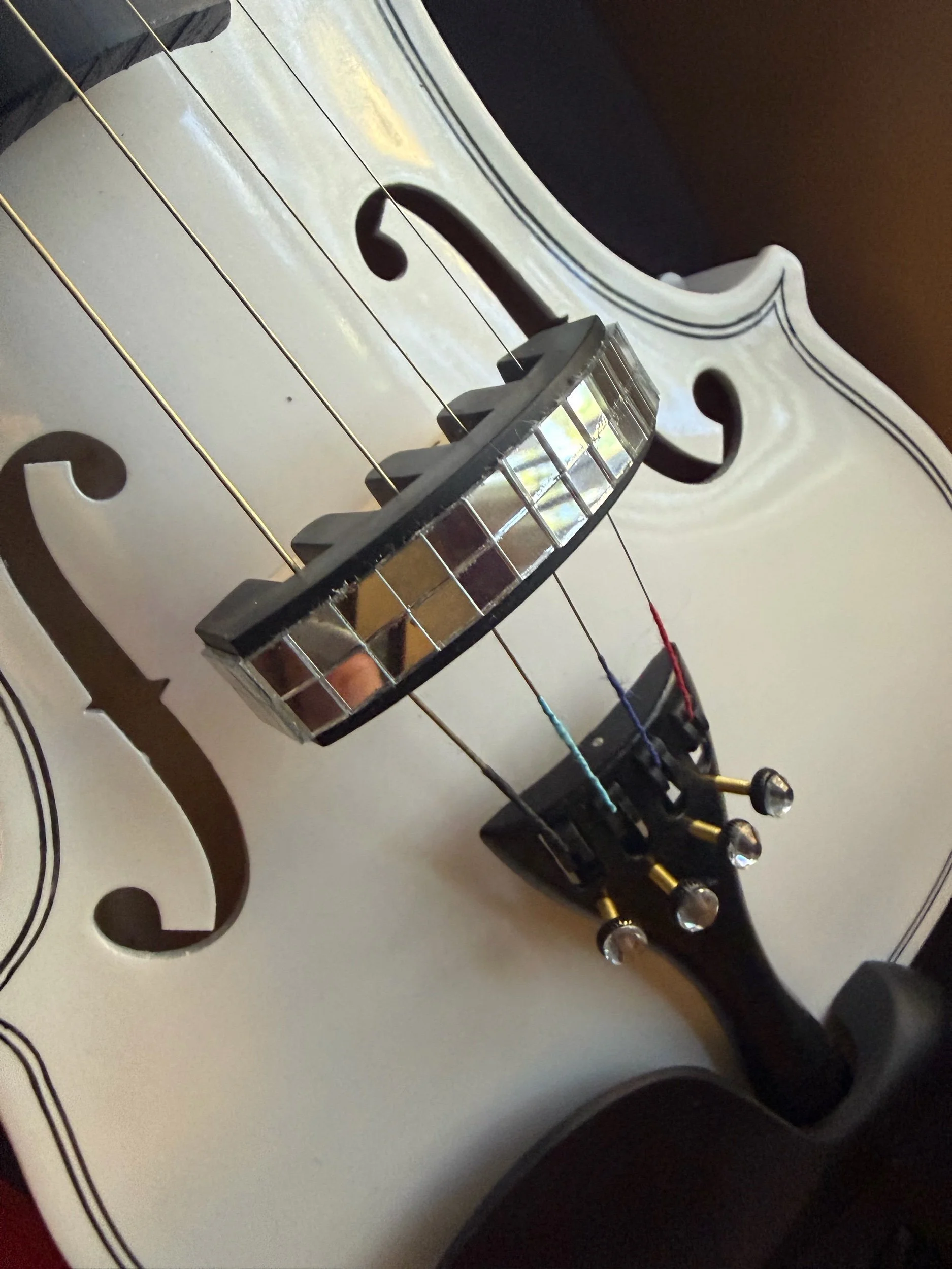 The Disco Mirror Practice Violin/Viola Mute brings disco-ball shine to every quiet practice session. Hand-covered in individually placed mirror tiles, this heavy practice mute dramatically reduces sound while making your instrument look show-ready even at midnight practice.